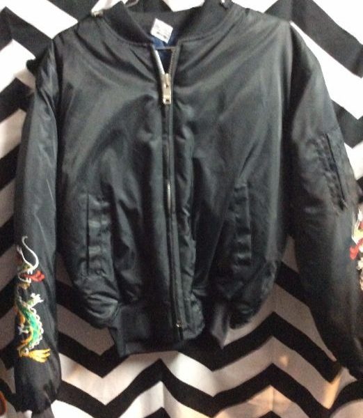 BOMBER JACKET W/HOOD – FAUX FUR – EMBROIDERED KOREA DRAGON