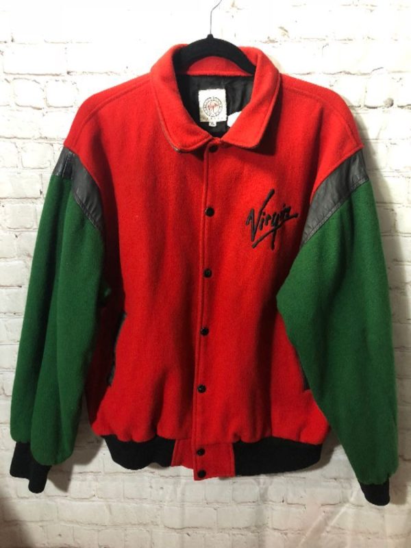 Bomber jacket, wool, snap-up, Virgin Clothing Company – London, Timeless Classics, embroidered front chest & back design red/green/black, size XL