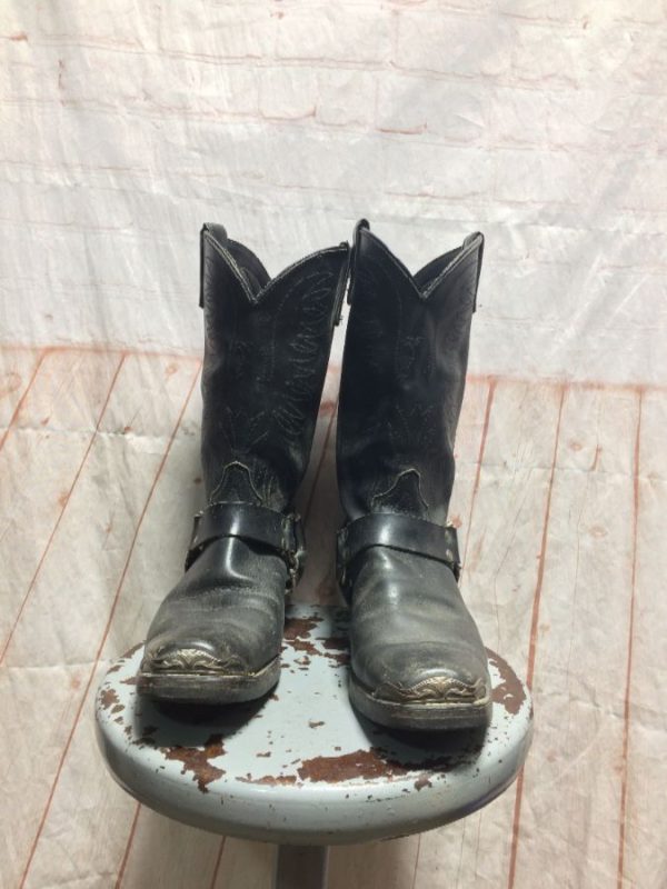 HARLEY MOTORCYCLE BOOTS W/ DECORATIVE METAL TOE TIPS/ HEELS & EMBROIDERED EAGLE