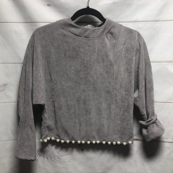 BOXY VELVET CORDUROY SWEATER WITH PEARL EMBELLISHMENT