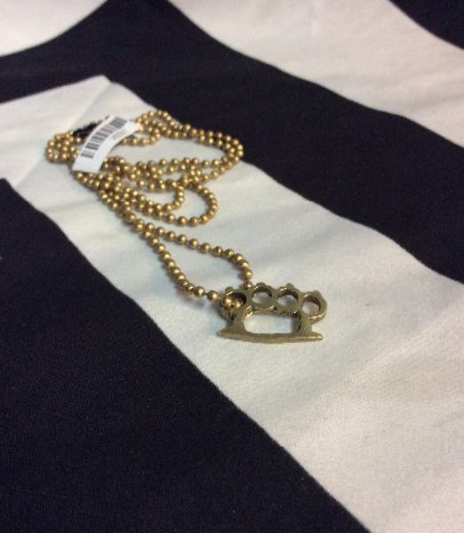 PENDANT, BRASS KNUCKLES, ON CHAIN, BRASS COLOR