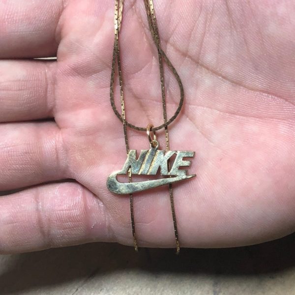 BRASS METAL NIKE LOGO NECKLACE W/ SNAKE CHAIN