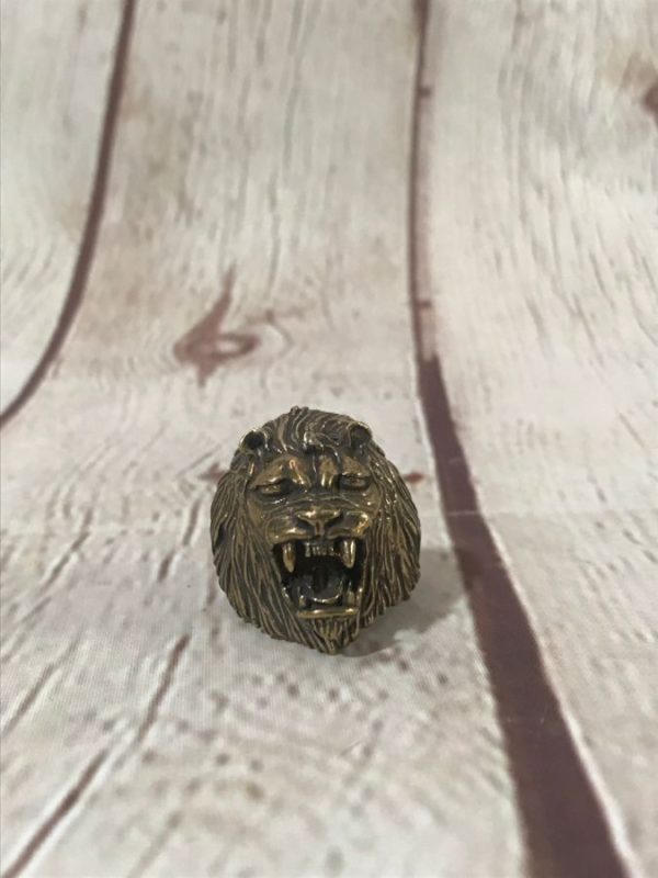 BRASS METAL ROARING LION HEAD RELIC RING