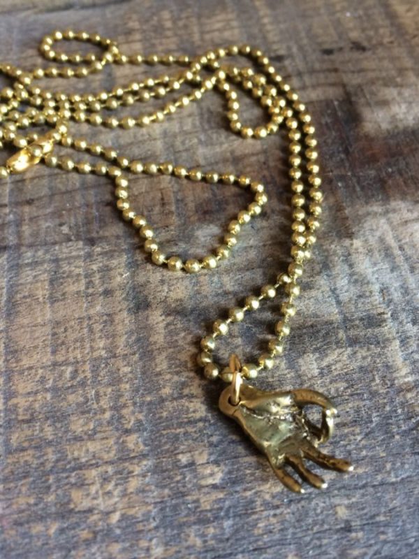 MktPrice necklace, Say Anything movable hand sign, A-Okay, brass metal, on ball-chain, gold