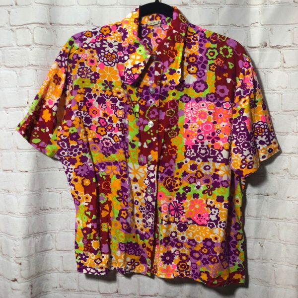 BRIGHT COLORED FLOWER PETAL ALLOVER PRINT SHIRT W/ COLLAR