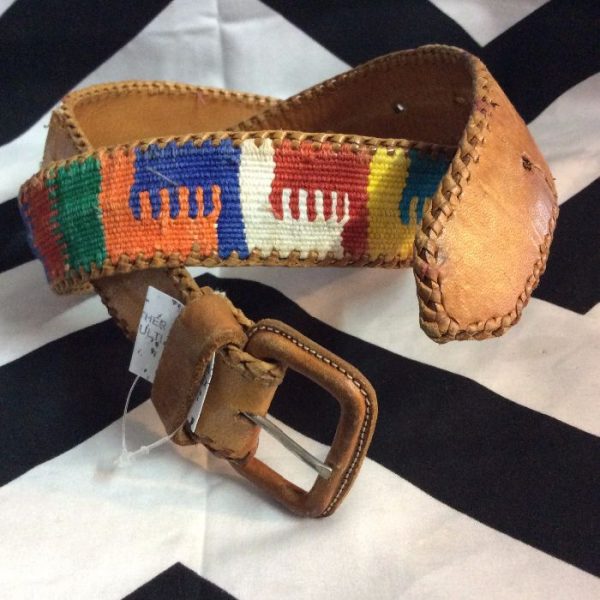 BELT – LEATHER – BRIGHT COLORED TEXTILE DESIGN