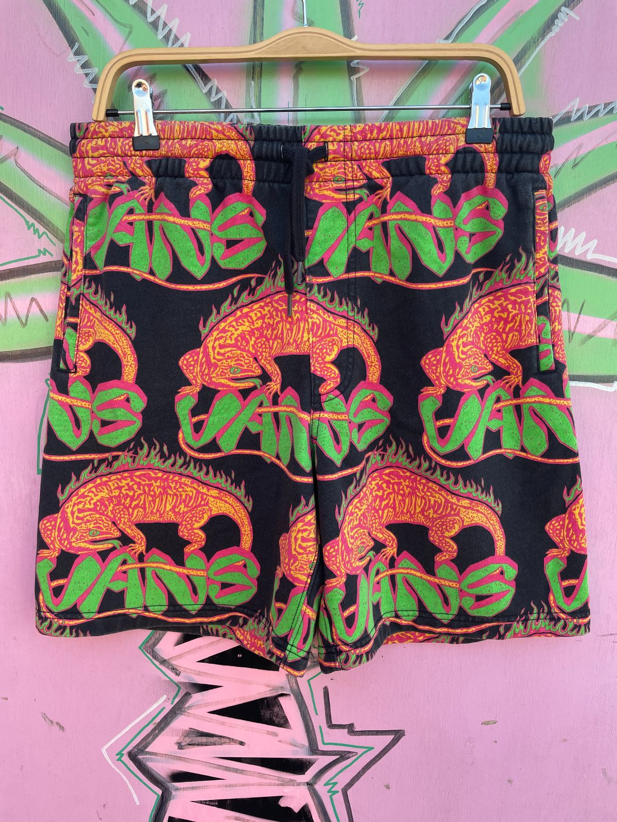 BRIGHT! NEON IGUANA PRINT COTTON TERRYCLOTH PRINT SWEATSHORTS