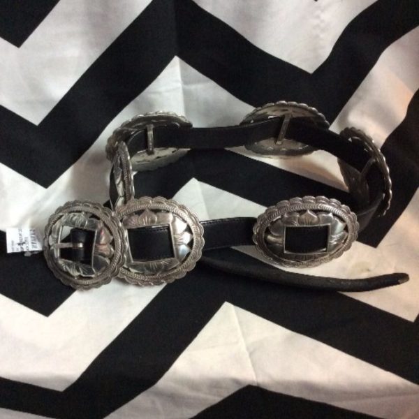 BELT LEATHER STERLING SILVER CONCHO BELT WITH COWBOY DESIGNS
