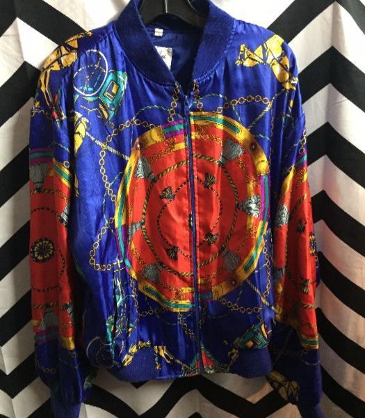 GORGEOUS FULLY LINED ORNATE CHANEL PRINT ZIPUP BOMBER JACKET AS-IS