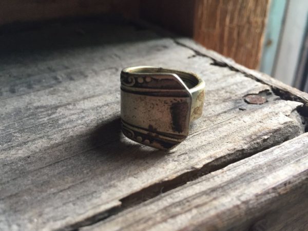 RING, BENT SPOON, BRONZE METAL, BRONZE, SIZE ADJUSTABLE