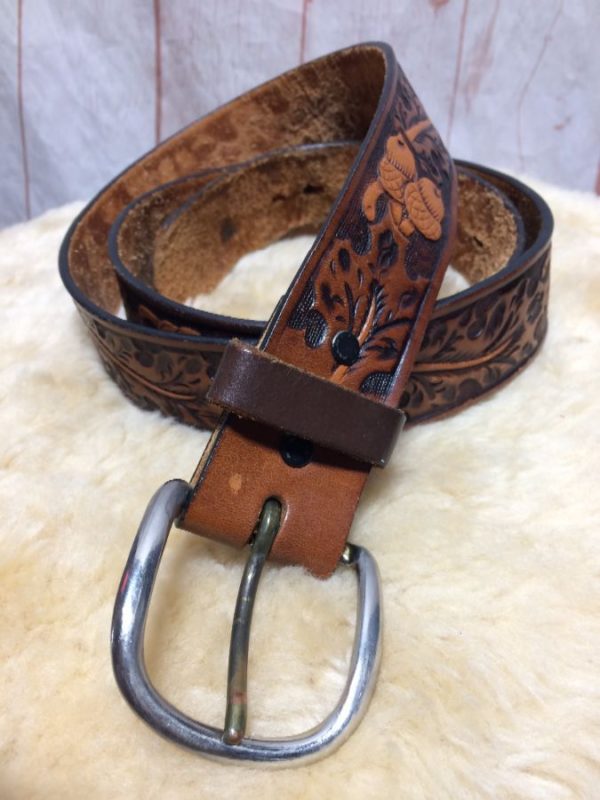 LEATHER W/ ACORN EMBOSSED DESIGN BELT