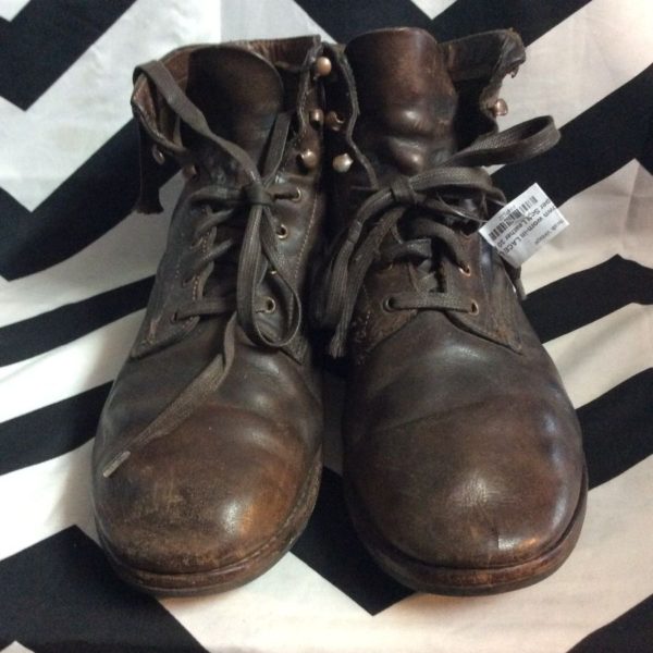 WORN-IN LACE UP WOLVERINE WORK BOOTS LEATHER