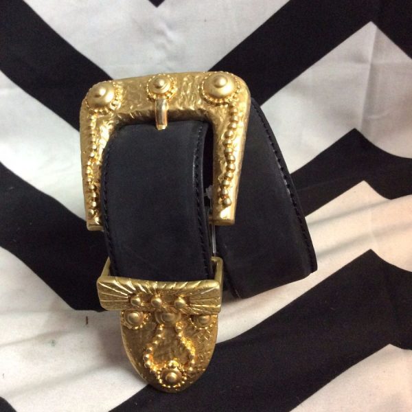 BRUSHED LEATHER BELT W/CHUNKY MATTE FINISHED GOLD HARDWARE