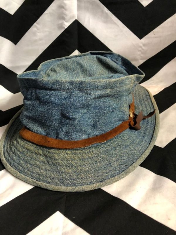 BUCKET HAT DENIM W/ SUEDE LEATHER TRIM/BAND