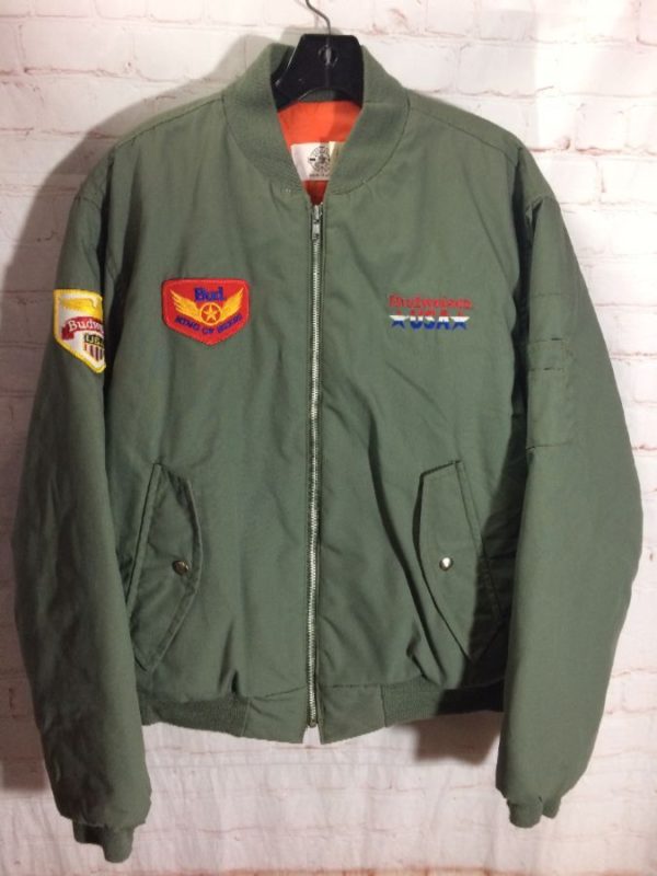 BUDWEISER MILITARY BOMBER JACKET W/ EMBROIDERED LOGO PATCHES