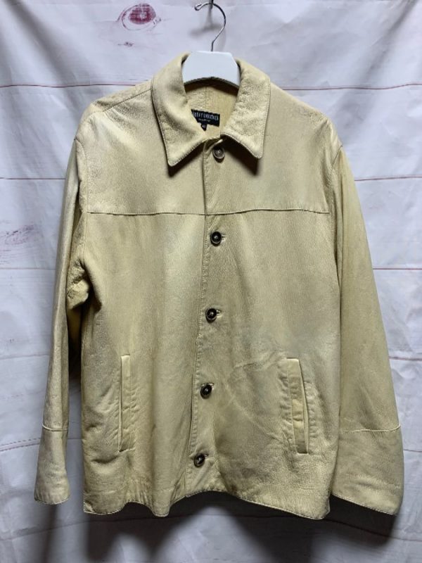 BUTTERY ITALIAN BUCKSKIN LEATHER SHIRT JACKET ANTLER BUTTONS AS-IS