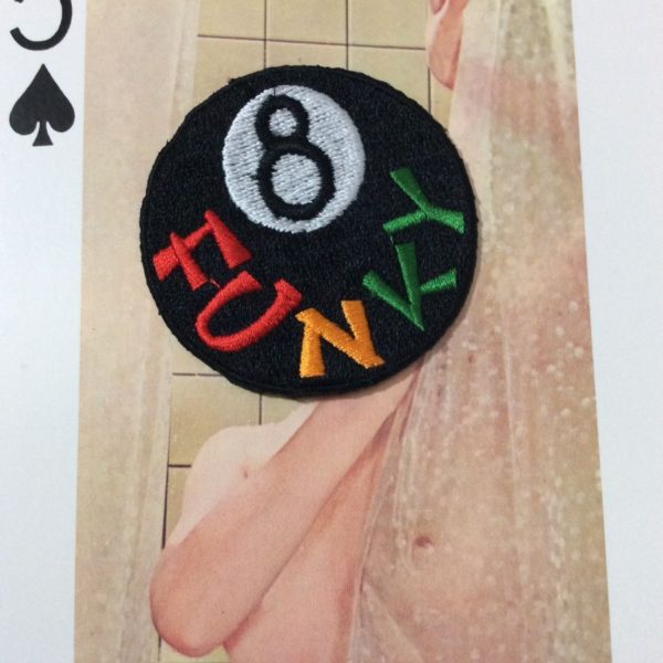 FUNKY EIGHT BALL BW EMBROIDERED PATCH W/ RASTA COLORS 1990’S