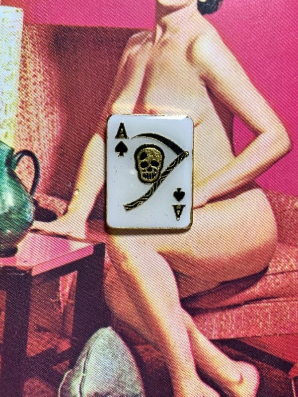 BW PIN- VINTAGE ACE OF SPADES DEATH SICKLE SKULL ENAMEL PIN