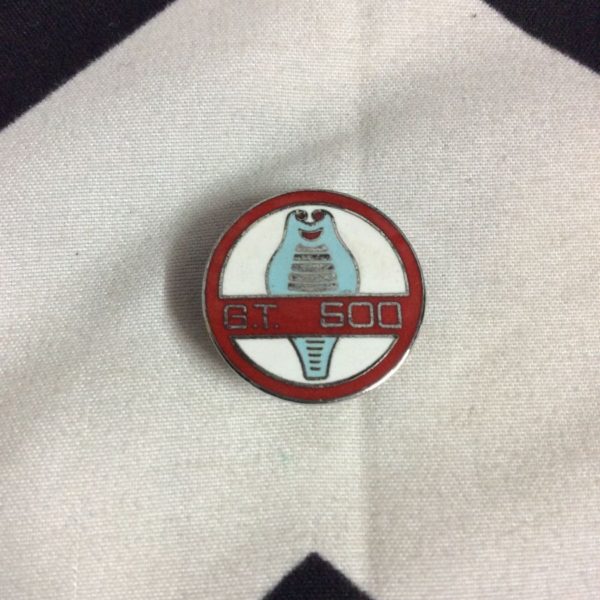 BW ENAMEL PIN, ROUND SHAPE, COBRA GT. 500, OLD STOCK, WHITE/RED/BLUE