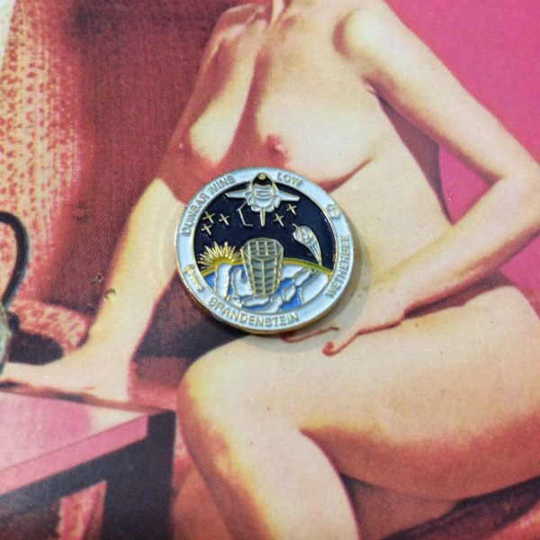 BW ENAMEL PIN, ROUND SHAPE, NASA SPAE SHUTTLE, BRANDENSTEIN,WETHERBEE, LOW, DUNBAR, IRVIN’S, NAVY/WHITE/BLUE/GOLD