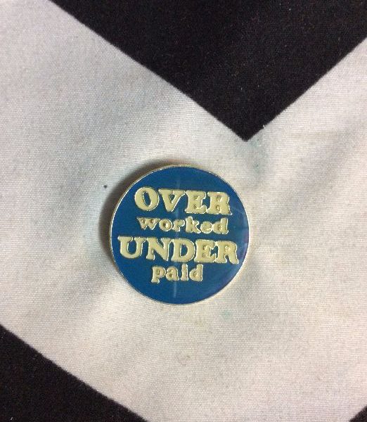 BW ENAMEL PIN – OVER WORKED, UNDER PAID