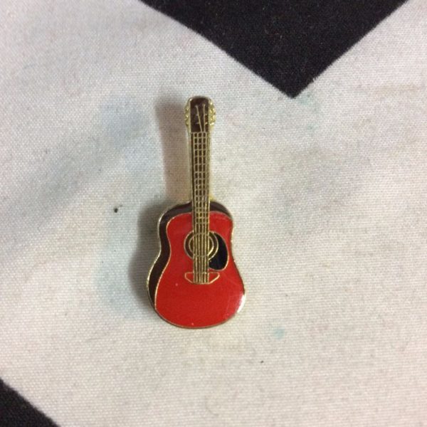 BW ENAMEL PIN, ACOUSTIC GUITAR, RED/GOLD/BLACK, SIZE 1.25″