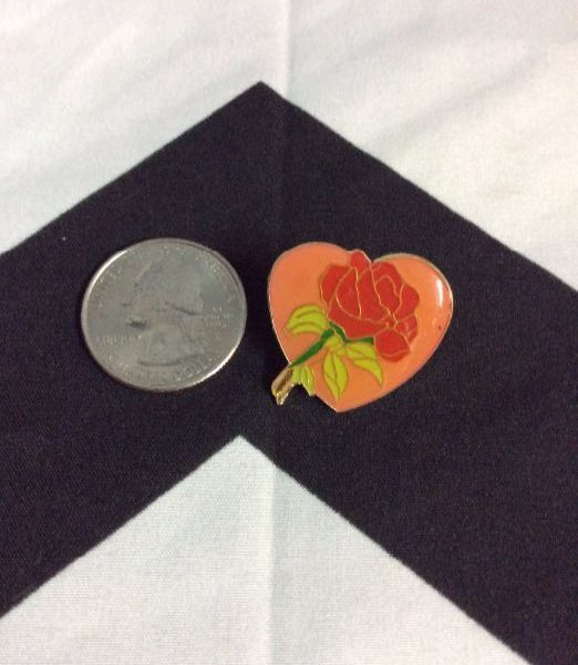 BW pin, Heart Rose, 164, red rose with heart design, orange/red/green