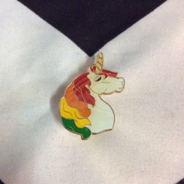 BW PIN, UNICORN HEAD WITH RAINBOW MANE, WHITE/RED/ORANGE/GREEN