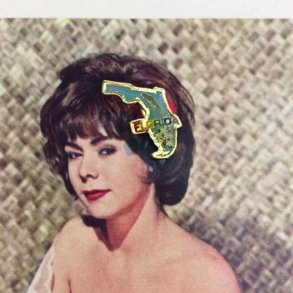 Vintage BW enamel pin, Florida State, collectable, state outline/bird & state flower design, teal/gold