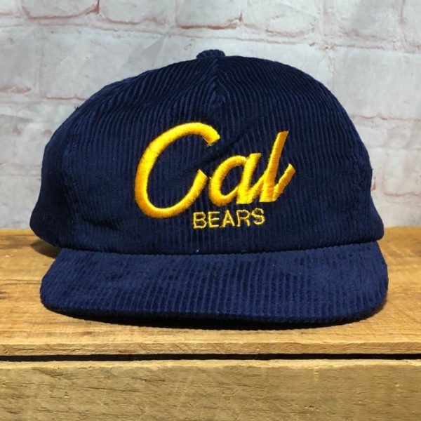 The Cord trucker cap, corduroy, Cal Berkely Bears, Collegiate, embroidered lettering, adjustable back, blue/gold, size adjustable