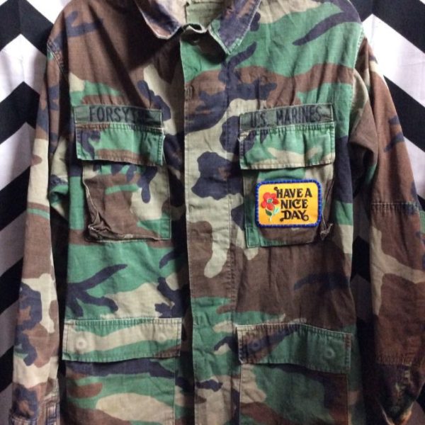 CAMO JACKET W/ US MARINES & HAVE A NICE DAY PATCHES
