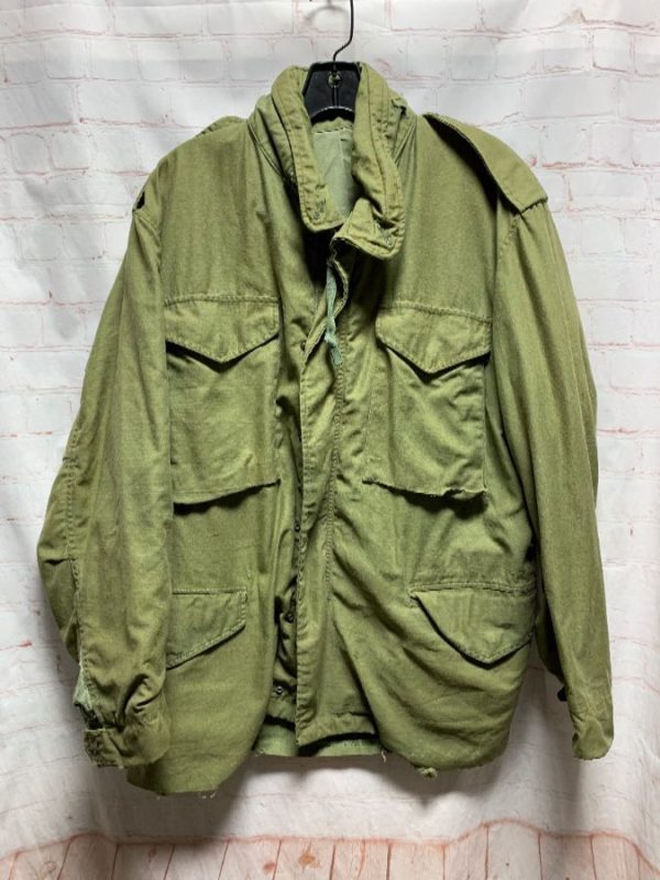 VINTAGE SOLID BUTTON DOWN MILITARY FIELD JACKET W/ CINCHED WAIST – AS IS