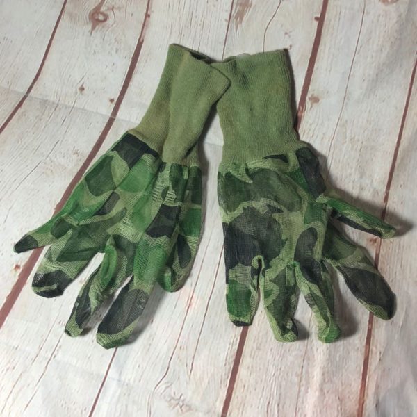 Gloves, mesh fabric with knit cuffs, camo design, olive green/dark gray, size L