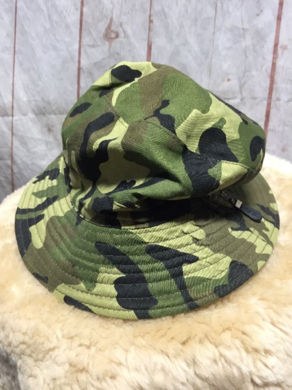 CAMO PRINT BUCKET HAT W/ ZIPPERED POCKET