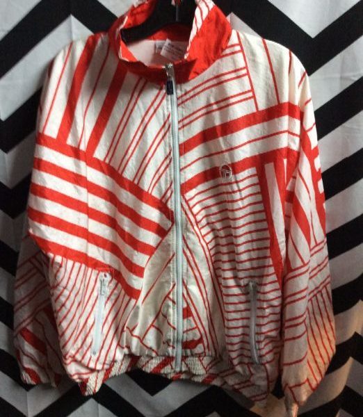 Windbreaker, zip-up, candy cane stripe design, red/white, size 10