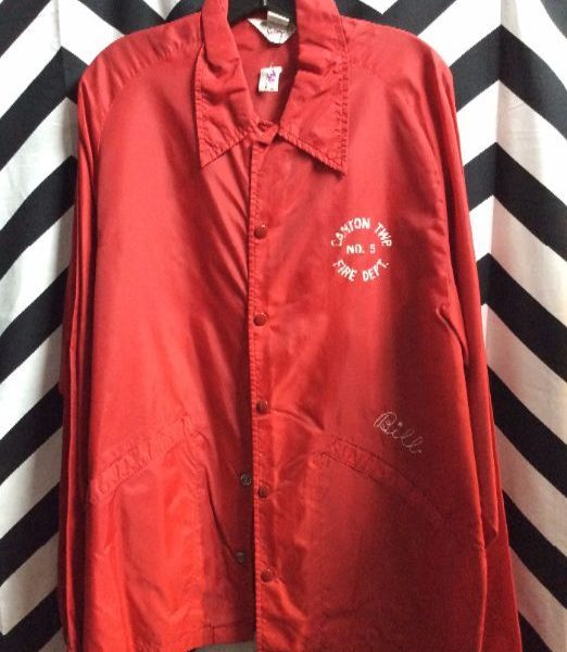 Windbreaker jacket, button-up, Canton TWP, Fire Dept, Bill, red/white