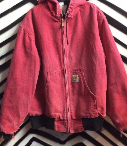 Carhartt jacket, canvas, hooded, zip-up/metal zipper, made in USA, red, size M as is