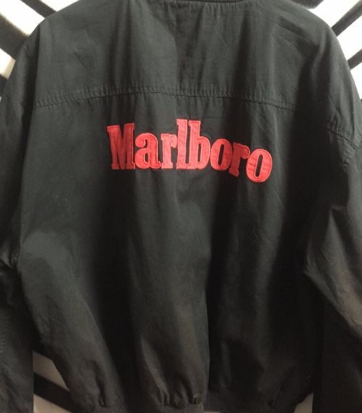 Marlboro canvas jacket, reversible, zip-up, applique lettering, black/red, size L