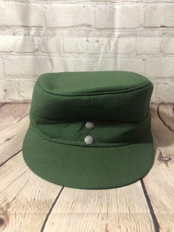 Alkero A. Kempf K.G. cap, German WWII military uniform hat with silver buttons, olive green/silver