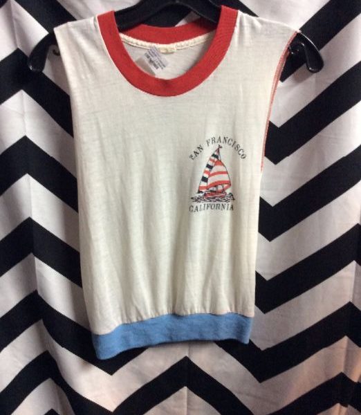 RETRO SAN FRANCISCO RINGER T-SHIRT – CAP SLEEVE W/SAILBOAT DESIGN