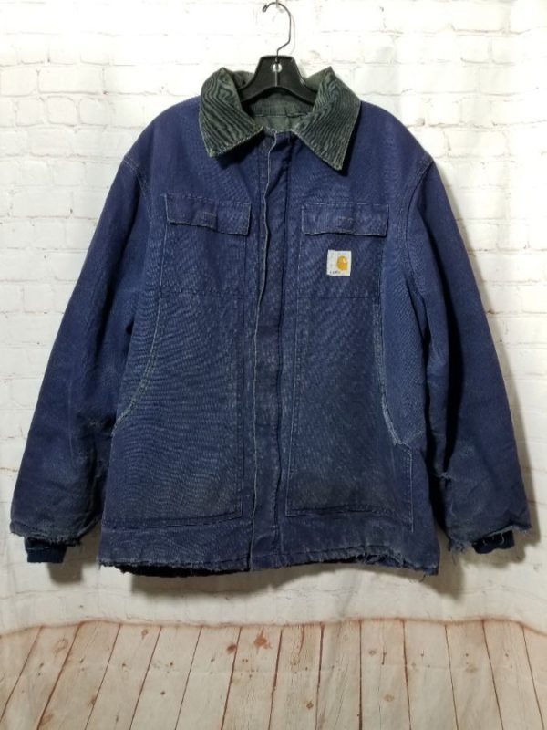 Carhartt Jacket, canvas duck, traditional arctic coat, zip-up, contrasting collar, front pocket, quilt-lined, blue, size XL