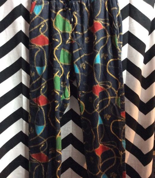CASUAL PANTS W/FUNKY CHAIN PRINT DESIGN