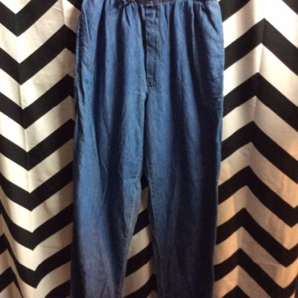 PANTS – CHAMBRAY/DENIM – ELASTIC ANKLES & WAIST – DRAWSTRING