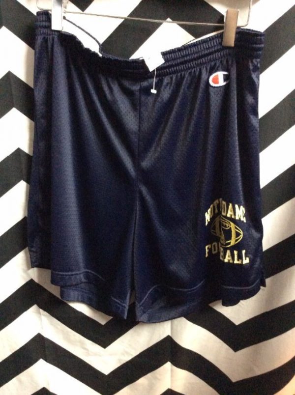 CHAMPION BASKETBALL SHORTS – NOTRE DAME – SCREEN PRINTED DESIGN LEFT LEG – LOGO TOP LEFT