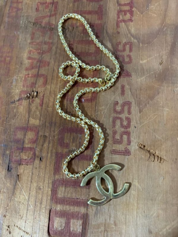 Mktplace necklace, choker style, Chanel CC pendant, gold metal plated, box chain, gold