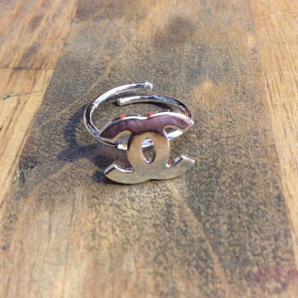 Ring, Chanel logo, metal, new shank, silver/gold, size adjustable
