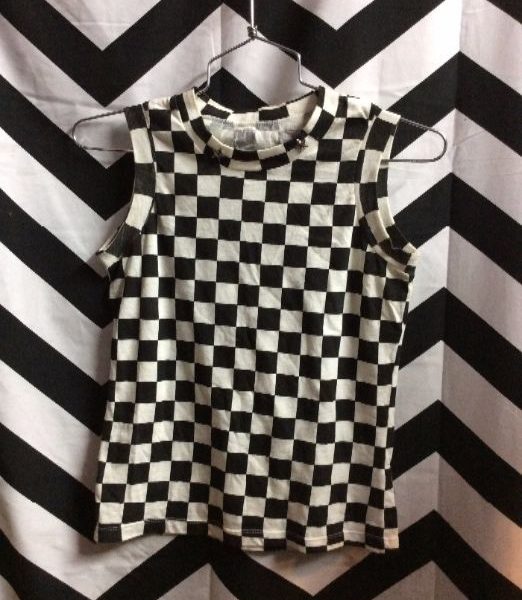 Top, sleeveless, check pattern, metal star studs, black/white, size S