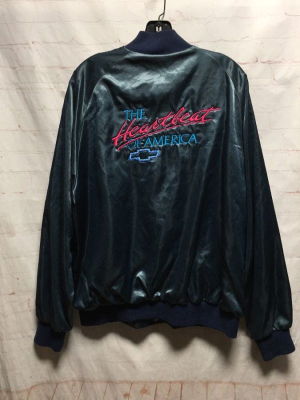 CHEVY SATIN JACKET W/ HEARTBEAT OF AMERICA EMBROIDERED DESIGN