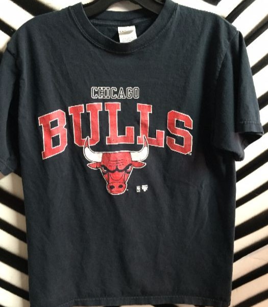 JORDAN ERA CHICAGO BULLS T-SHIRT, SILK SCREENED, BLACK SHIRT RED/WHITE DESIGN, SIZE M