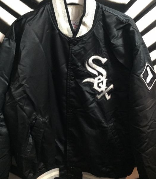 Chicago Whitesox Starter baseball style jacket, button-up, embroidered designs, black/white, size XL